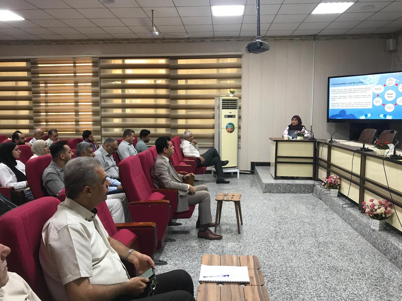 A specialized panel discussion entitled “Future Prospects for Treating Organic Water Pollutants” was held at the College of Science, Department of Physics, to review the latest innovations and sustainable technologies to address water pollution challenges. Dr. Marwa Jawad Kazem gave a detailed presentation on the health and environmental risks associated with pollutants. The panel discussion covered five main topics: nanotechnology, advanced oxidation processes, biological treatment, smart monitoring, and sustainability and recycling. The session concluded by emphasizing the importance of these solutions in providing safe and environmentally friendly water for future generations.