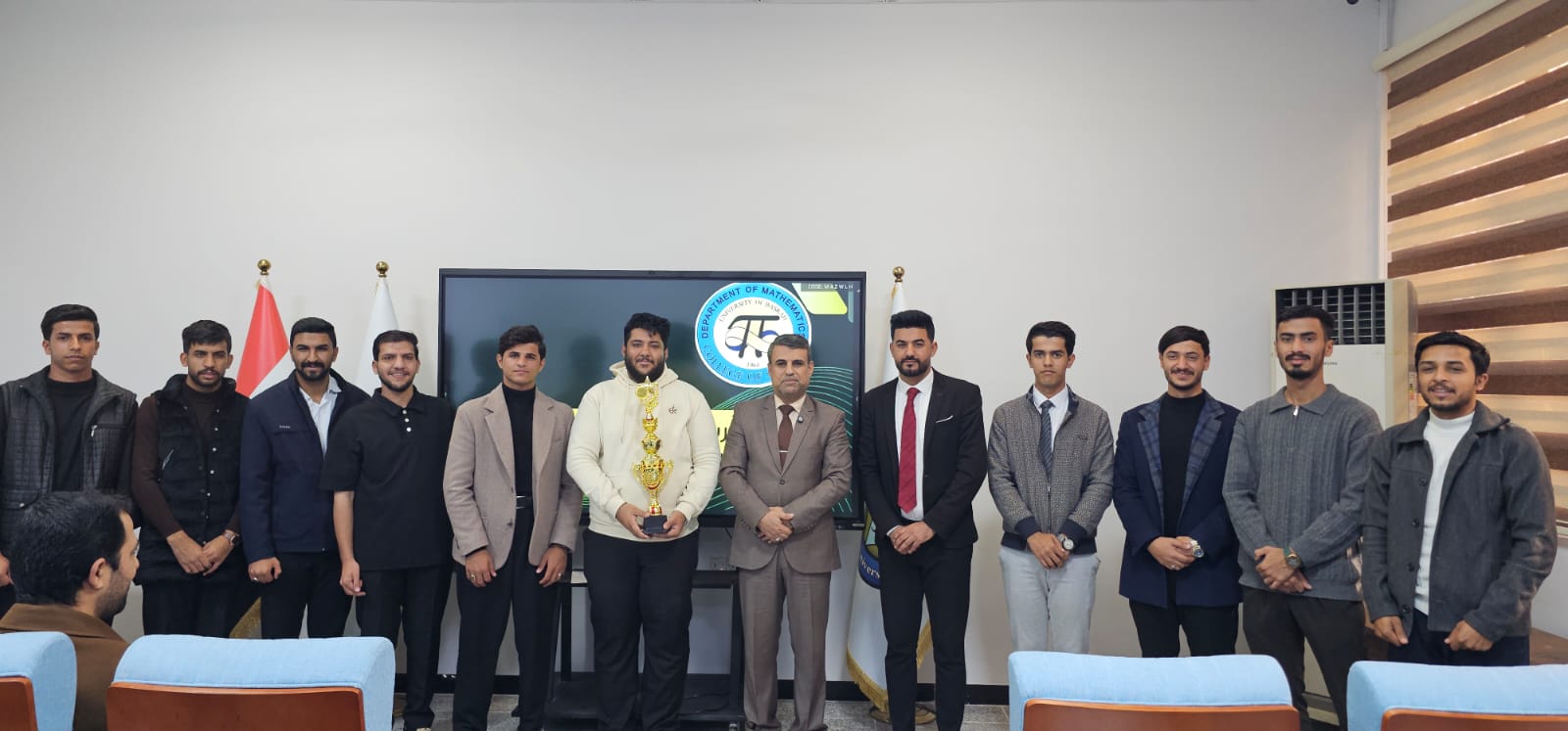 As a gesture of appreciation and pride for their outstanding athletic achievements, the Head of the Mathematics Department at the College of Science, Dr. Mohammed Sari Kadhim, honored the Mathematics Department football team in celebration and recognition of their second-place finish in the Dean's Cup tournament. This victory is considered a remarkable achievement for the department, as the team secured this win in a tournament that included teams representing various departments within the college, from both the morning and evening programs, in addition to a staff team. Besides honoring the players, he also made sure to recognize and appreciate the efforts of the team's organizing and administrative committee for their vital role in supporting the team and facilitating its mission throughout the tournament.