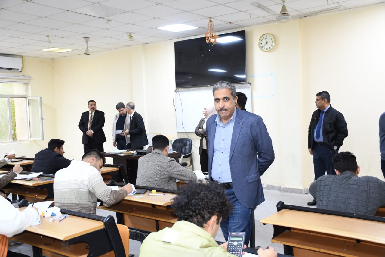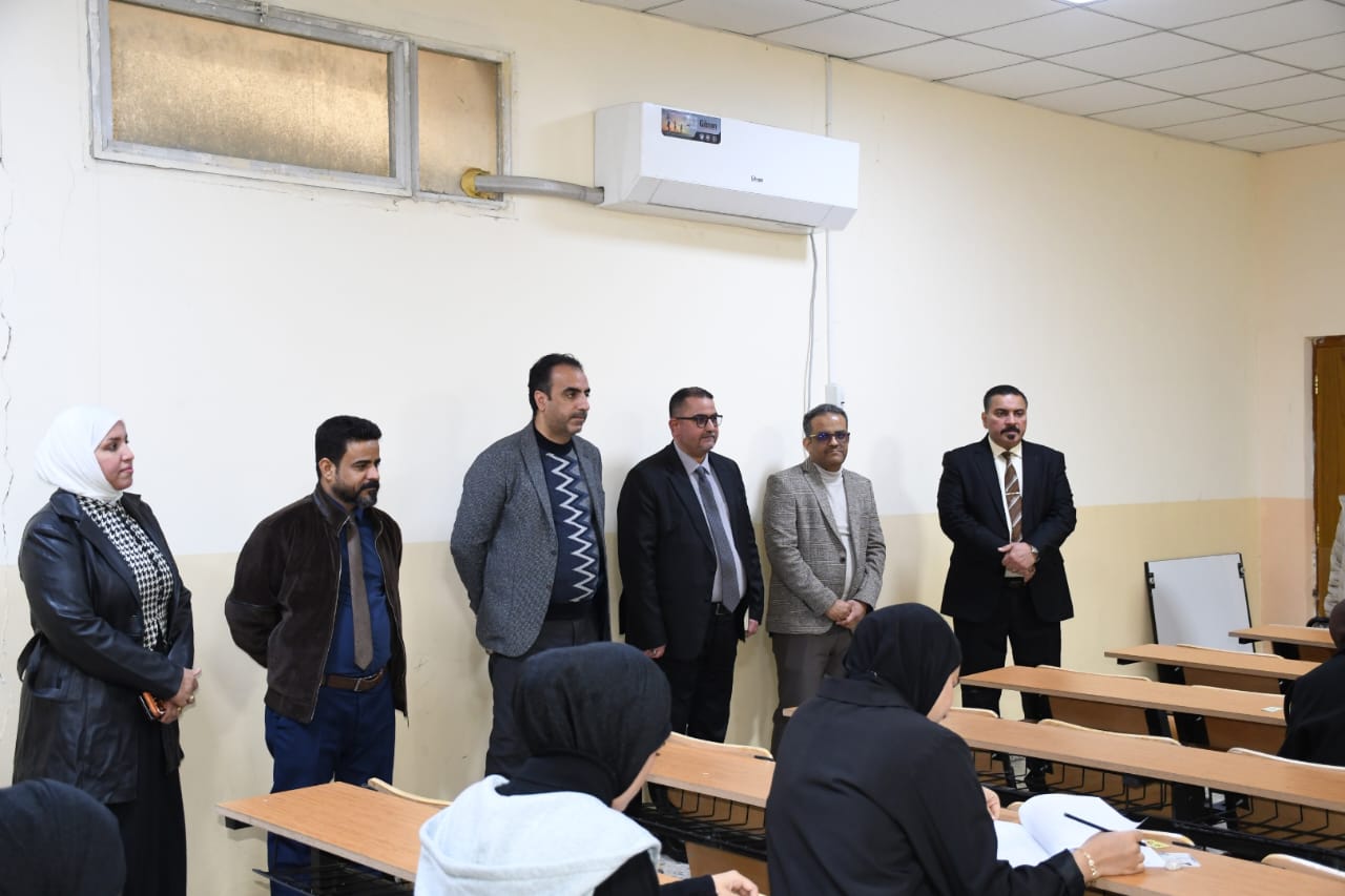 The dean of the College of science, professor Dr. Ali abdulamam Abdul Zahra, and the members of the central examination committee of the College of science, represented by the members of the Council of the College of Science, followed the process of conducting the final exams for the first semester 2025-2026, where the dean and the members of the committee inspected the examination halls in all scientific departments and the complex of halls of the College of Science and