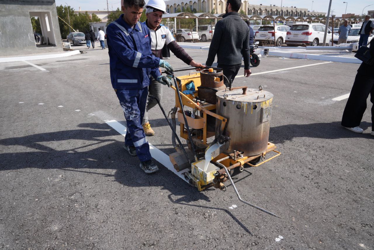 Professor Dr. Ali Abdul-Imam Al-Riahi, the dean of the Faculty of Science, oversaw the last phases of finishing the Faculty of Rear Sciences garage, where the installation of lampposts in the surrounding corridors and garage planning work to arrange parking in accordance with authorized traffic specifications and measurements began.