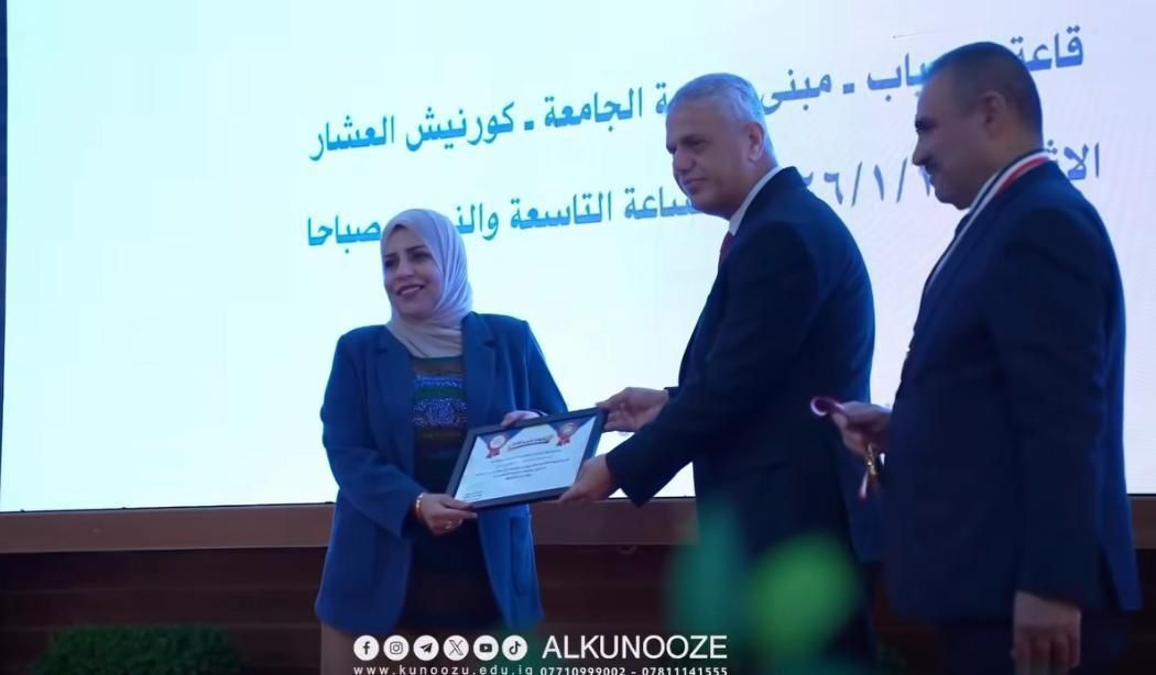 The ceremony also included honoring the director of the Quality Assurance Division at the College of Science, Prof. Dr. Dunia Ali Hussein, in recognition of her outstanding administrative contributions and her active role in supporting accreditation pathways and enhancing the quality of education and scientific research at the college.