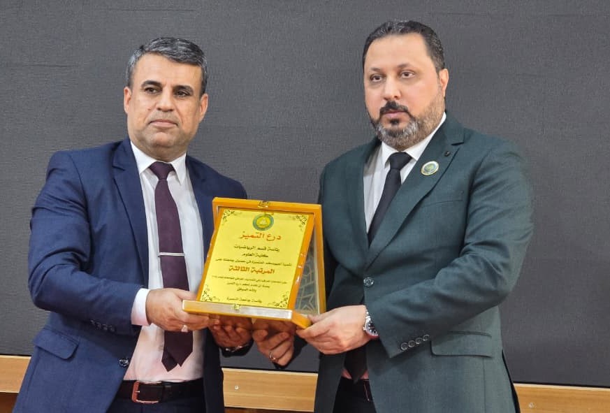 The head of the University, Professor Dr. Muhannad Jawad Al-Asadi, honored the Department of Mathematics at the College of Science, represented by the Head of the Department, Dr. Muhammad Sari Kadhim, for achieving second place among mathematics departments in Iraq in the national ranking results.