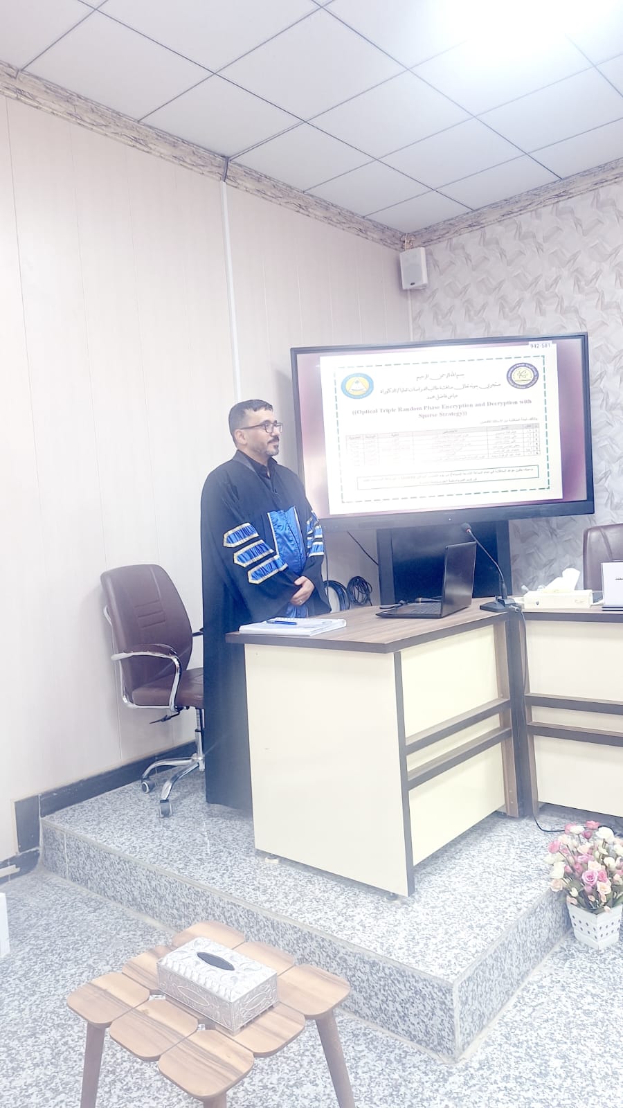 The Department of Physics at the College of Science, University of Basra, discussed the doctoral thesis titled “Three-Phase Optical Encryption and Decryption Using Diffuse Representation” by graduate student Abbas Fadel Mohammed.