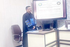 Geology department at College of Science organized a workshop as training course for graduate students entitled Oil Filed Familiarization. It has been presented by Mohammed jabbar obaid hosted from Al-Namariq United Company for Training and Development the workshop aims to develop students of geologists to work in oil companies, The first day topics was about( Rig types, Hoisting component ) The lecture included an explanation type rig ( Land Rig and Off Shore Rigs) and so Hoisting component ( Mast, Draw Work, Crown Block, Drilling Line and Traveling Block).
